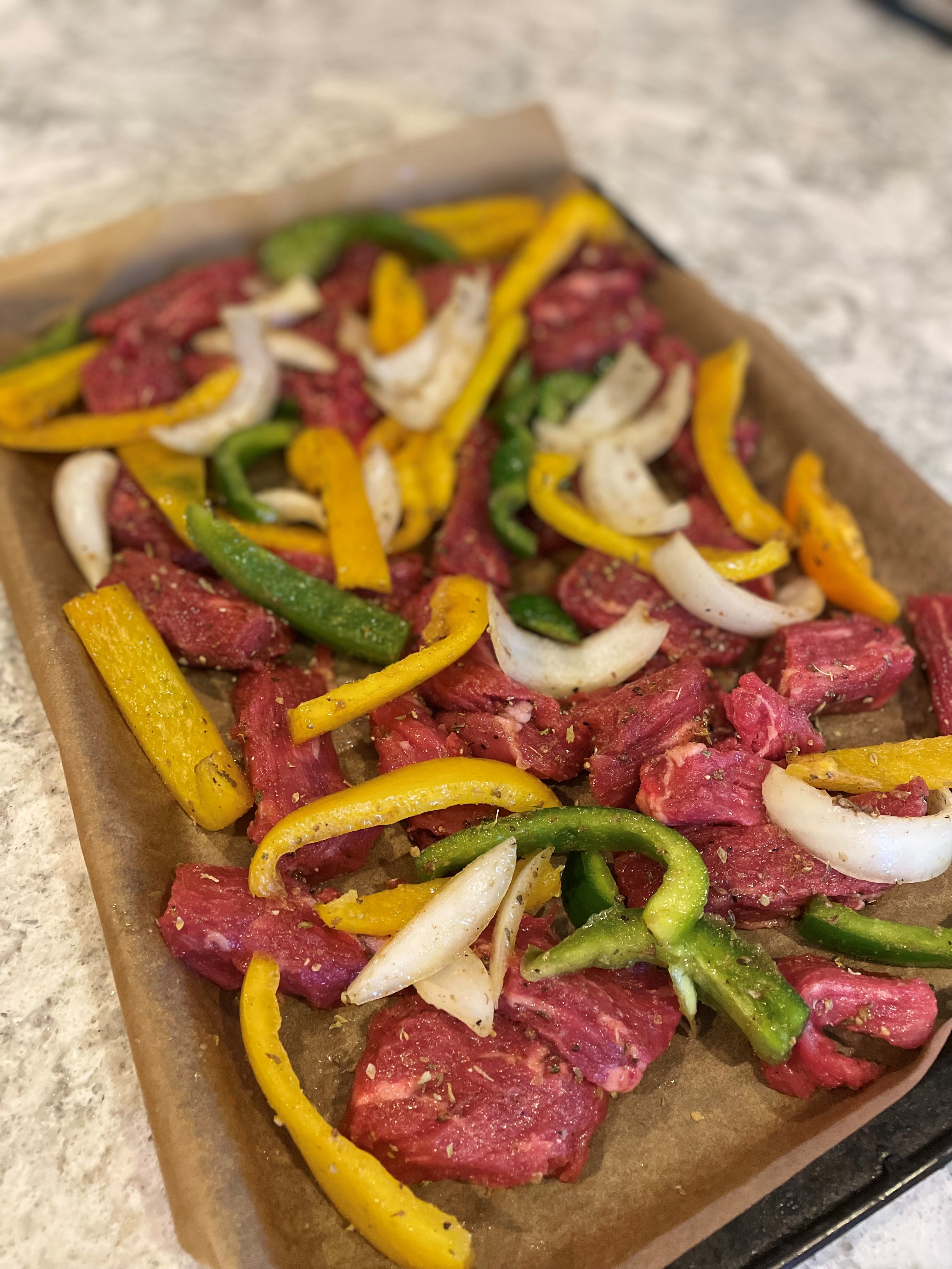 1 ¼ lb steak or chicken, cut into 2-inch strips*